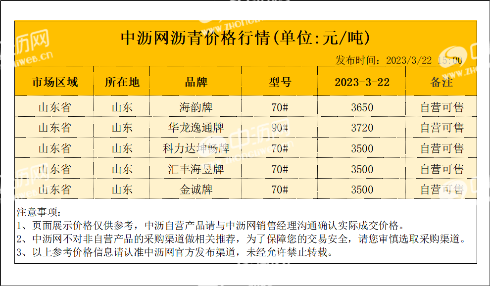 中沥网沥青价格行情(20230322)