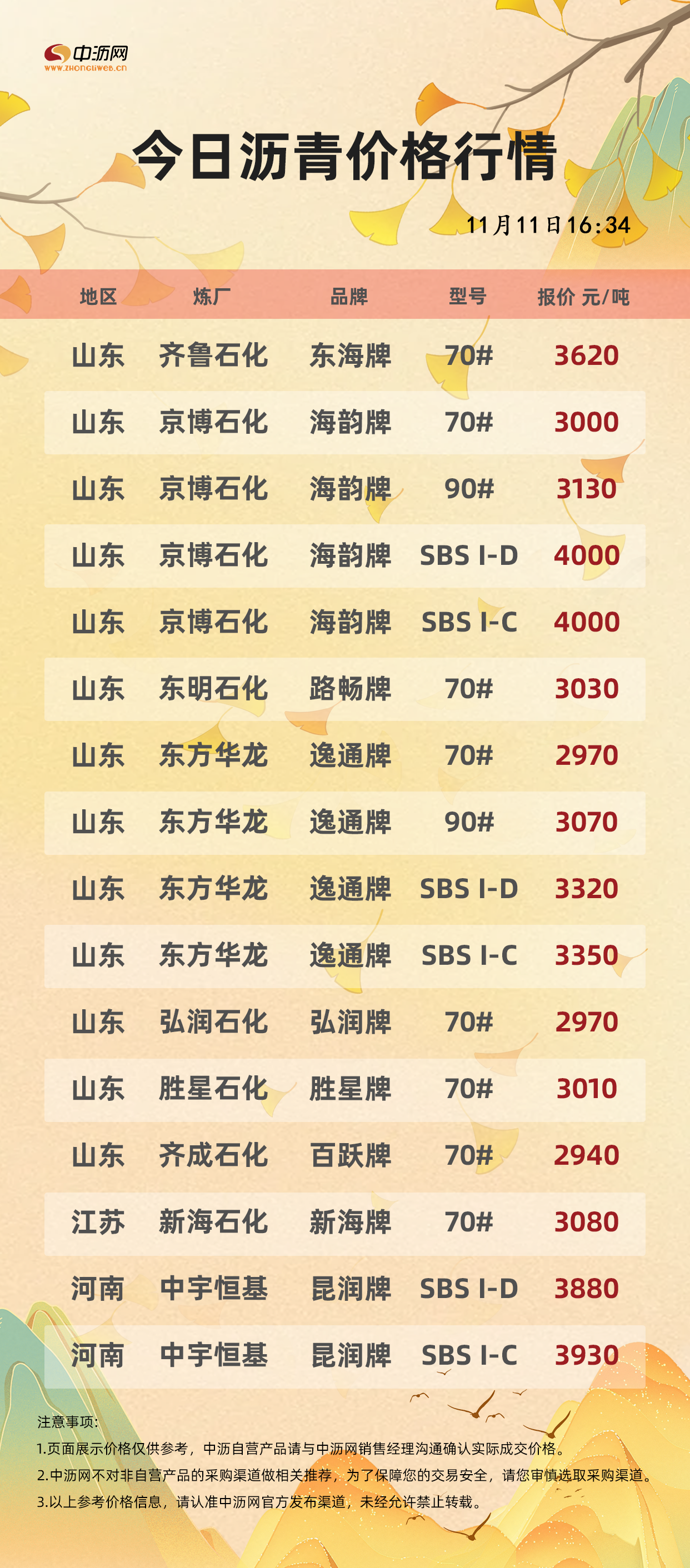 中沥网沥青行情价格(20251111)