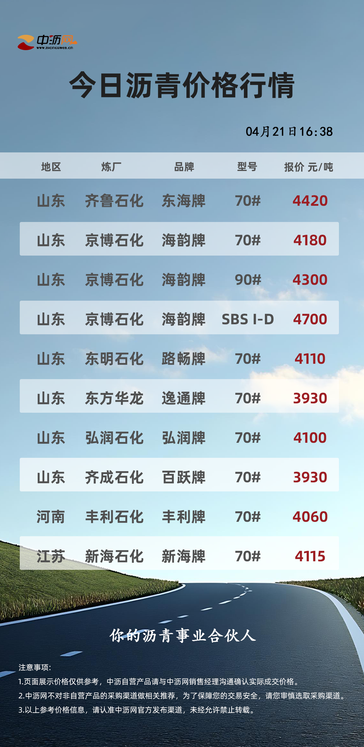中沥网沥青行情价格(20260421)
