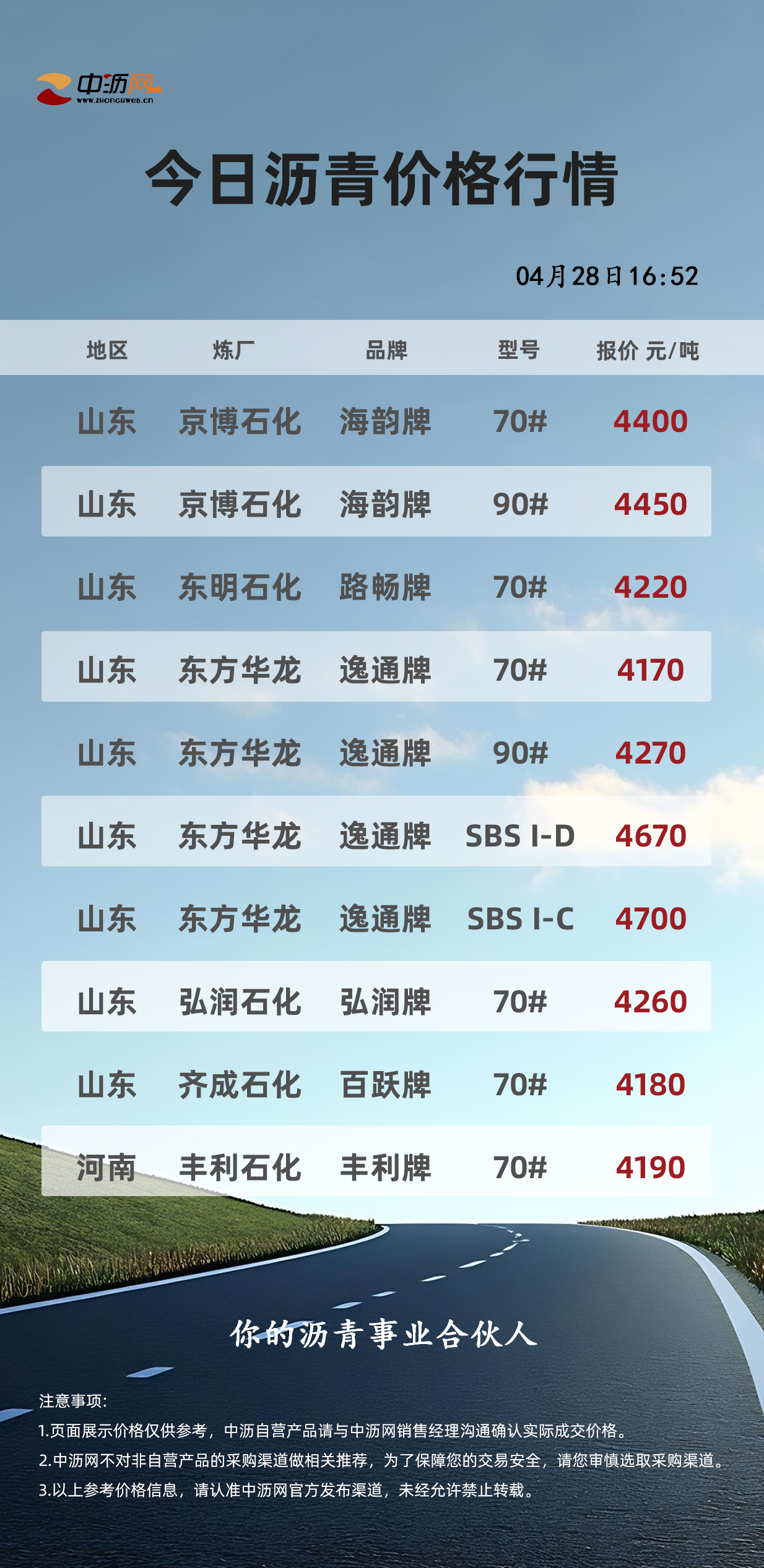 中沥网沥青行情价格(20260428)