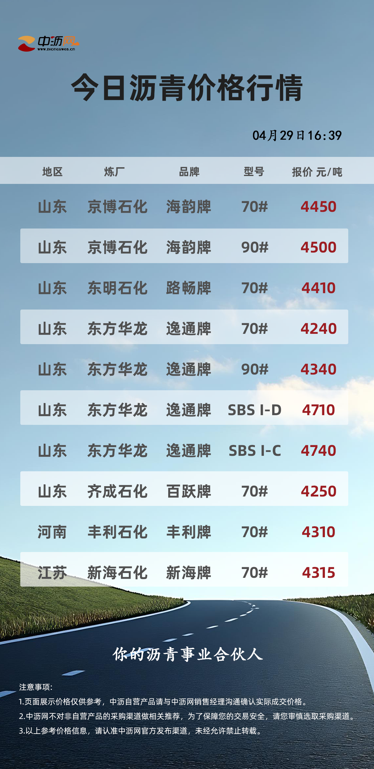 中沥网沥青行情价格(20260429)