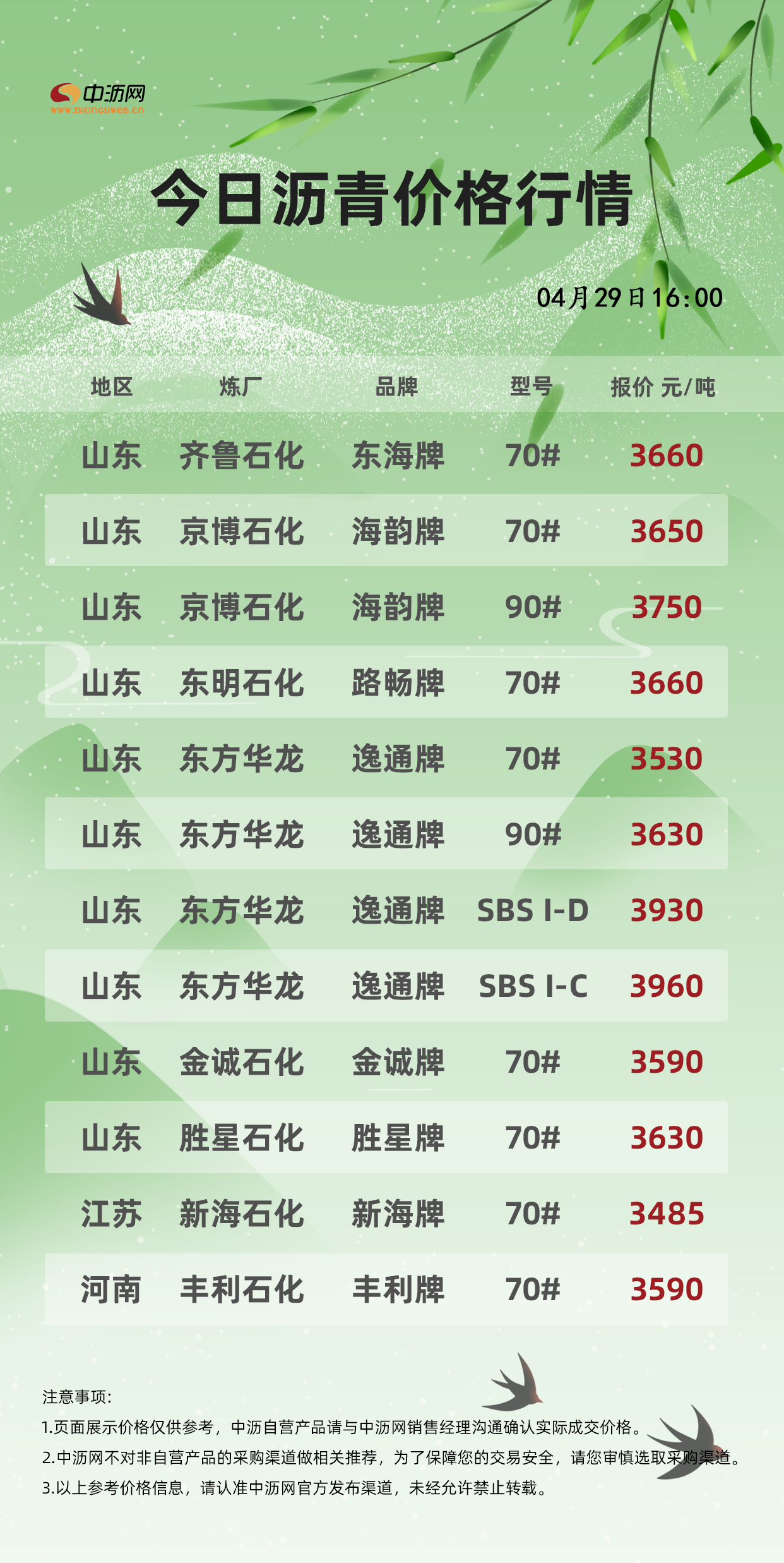 中沥网沥青行情价格(20250429)