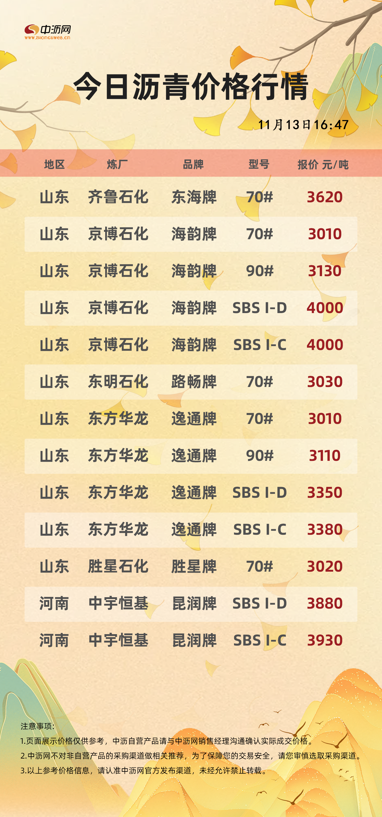 中沥网沥青行情价格(20251113)
