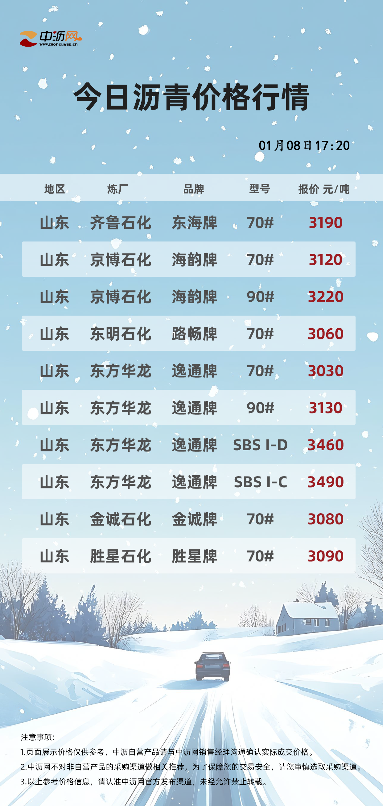 中沥网沥青行情价格(20260108)