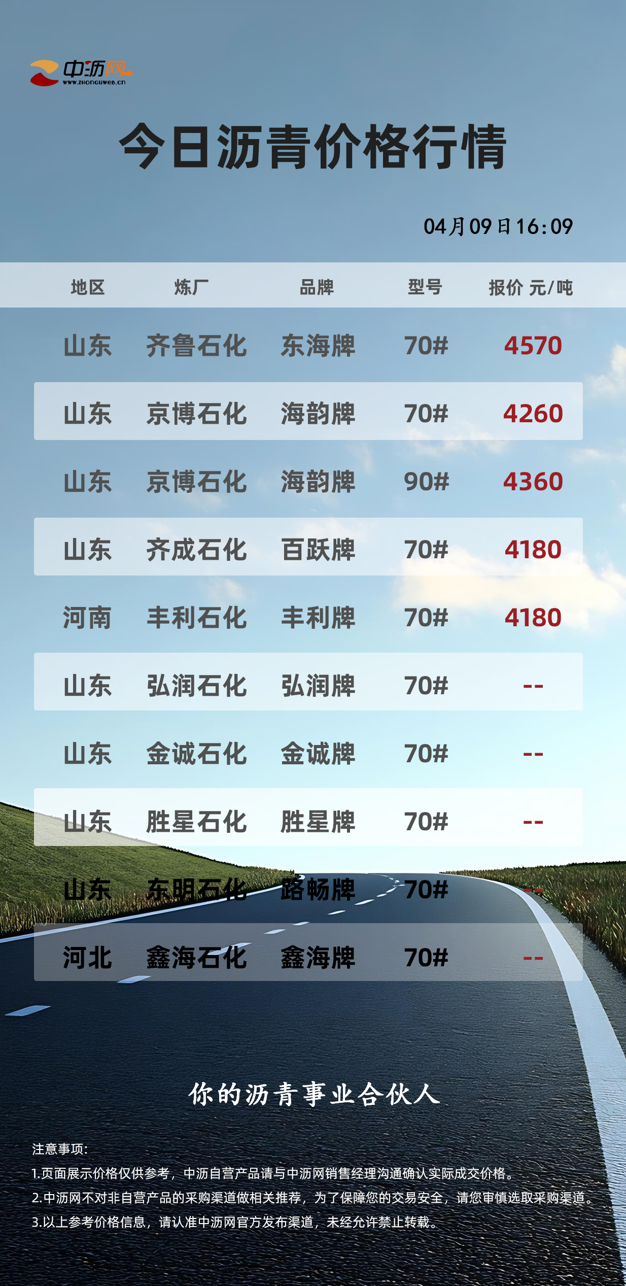 中沥网沥青行情价格(20260409)